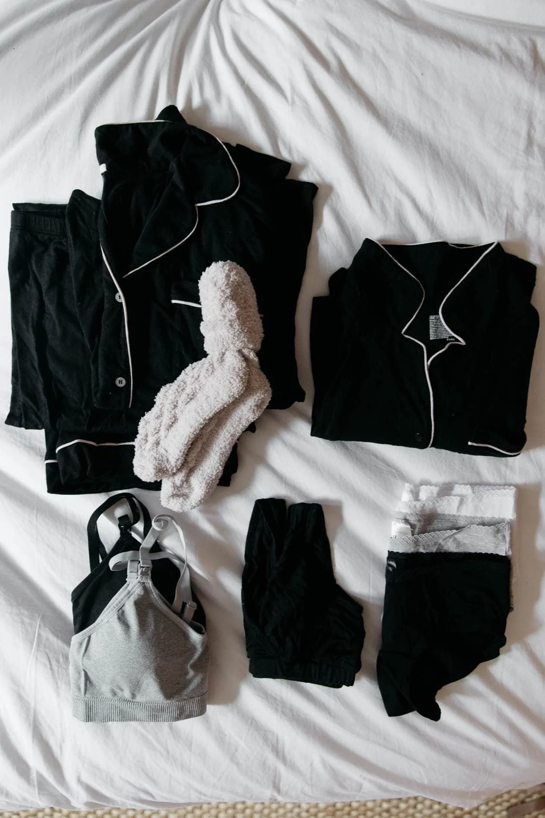 Loose clothing for after birth. Think: high waisted, comfortable, soft.